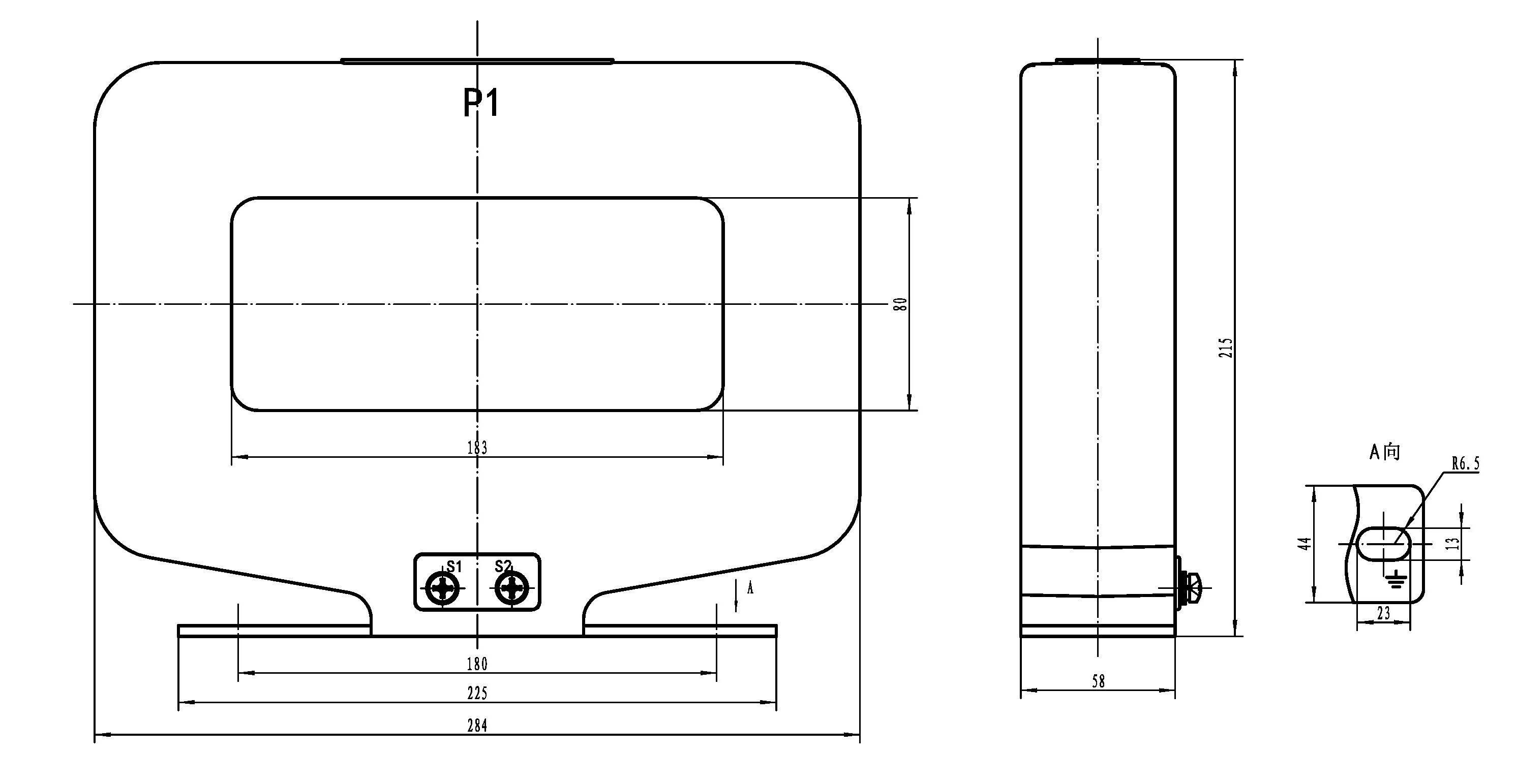 ●結(jié)構(gòu):電流互感器的鐵心為環(huán)形和矩形兩種。二次繞組沿鐵芯周均分布,采用環(huán)氧樹脂澆注為電流互感器外殼,電流互感器的設(shè)計為窗孔,供一次母排或電纜穿過。P1標(biāo)記為一次進線端;P2標(biāo)記為一次出線端;二次電流由S1流出端;S2為流入端,即為減極性。