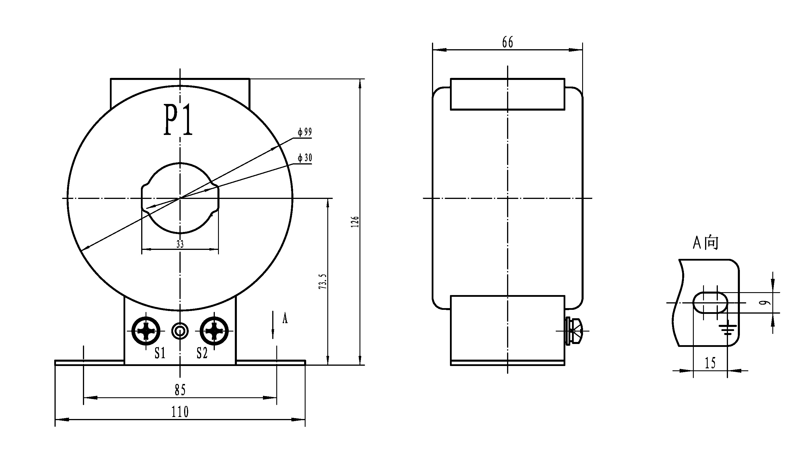 ●結(jié)構(gòu):電流互感器的鐵心為環(huán)形和矩形兩種。二次繞組沿鐵芯周均分布,采用環(huán)氧樹脂澆注為電流互感器外殼,電流互感器的設(shè)計為窗孔,供一次母排或電纜穿過。P1標(biāo)記為一次進(jìn)線端;P2標(biāo)記為一次出線端;二次電流由S1流出端;S2為流入端,即為減極性。