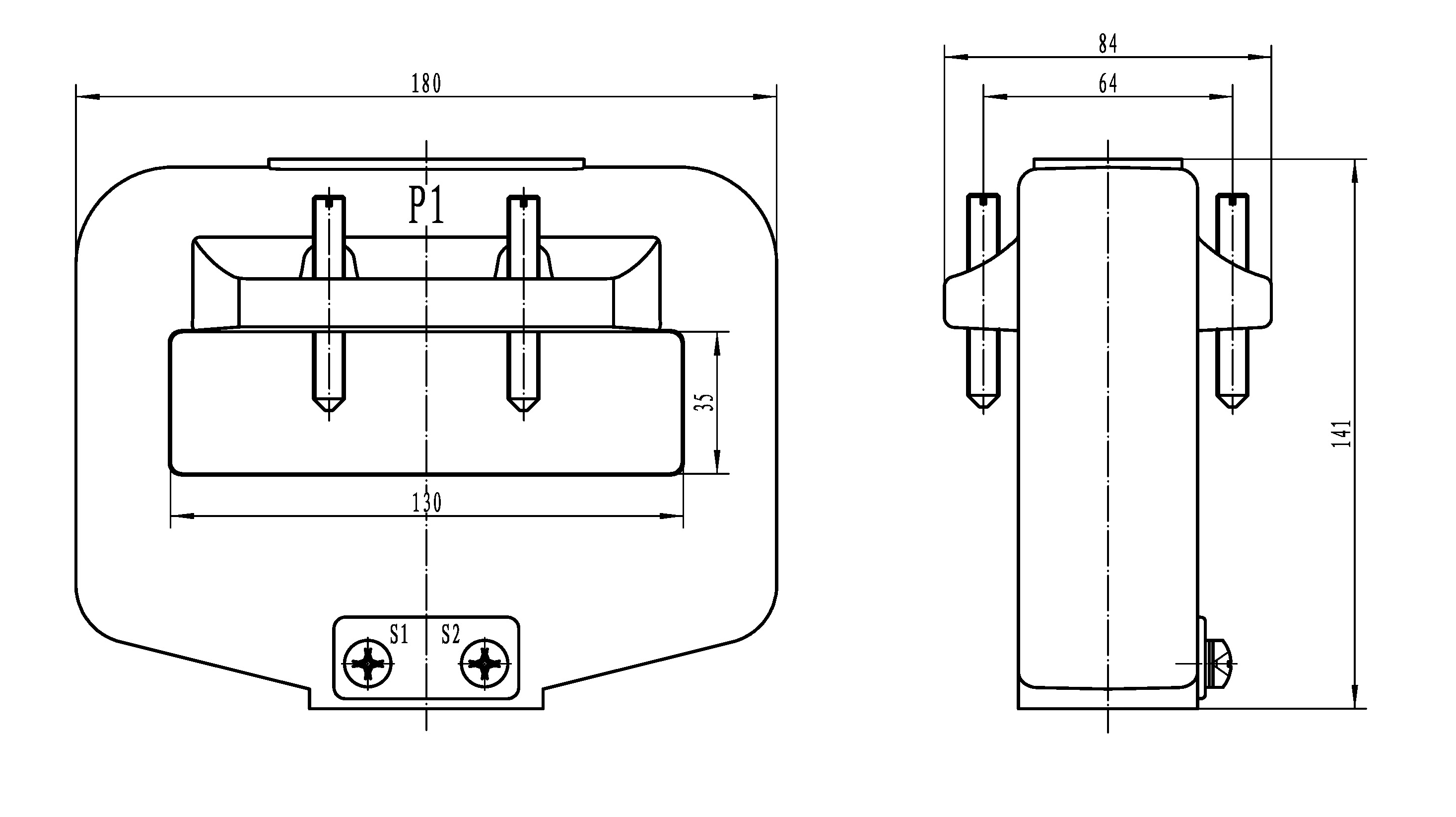 ●結(jié)構(gòu):電流互感器的鐵心為環(huán)形和矩形兩種。二次繞組沿鐵芯周均分布,采用環(huán)氧樹脂澆注為電流互感器外殼,電流互感器的設(shè)計(jì)為窗孔,供一次母排或電纜穿過(guò)。P1標(biāo)記為一次進(jìn)線端;P2標(biāo)記為一次出線端;二次電流由S1流出端;S2為流入端,即為減極性。